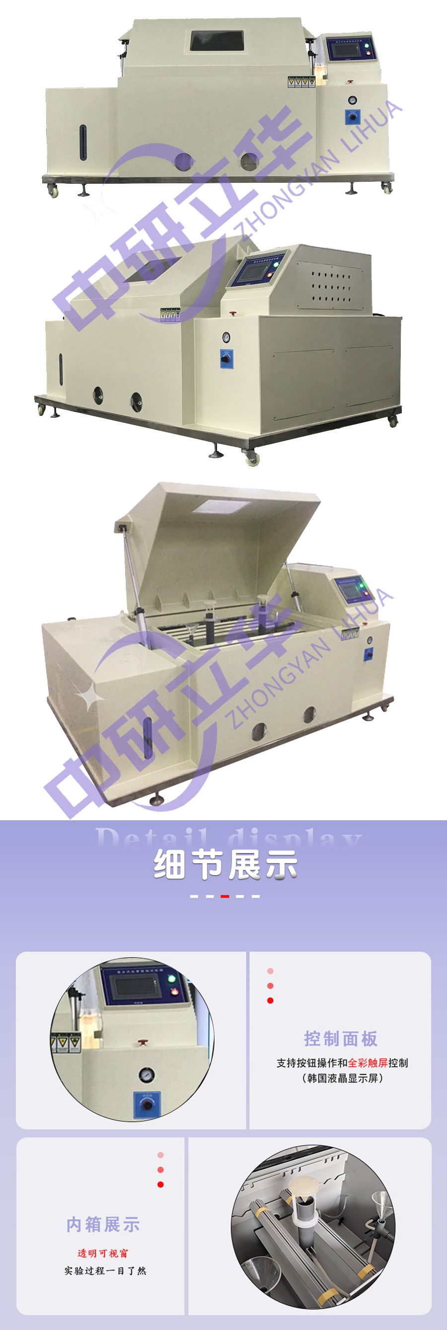 產(chǎn)品用途 溫濕度鹽霧復(fù)合試驗機(jī)是為加速腐蝕試驗中 接近實際的自然狀況,以自然環(huán)境中較常遇見之狀況加以模擬,以數(shù)倍於自然 環(huán)境之嚴(yán)苛條件加以組合測試,如鹽霧、干燥、濕潤、常溫、低溫等環(huán)境加以組合,可任意順序或單獨進(jìn)行測試。主要測試品針對在激烈環(huán)境變化下使用的產(chǎn)品, 如汽機(jī)車零配件,航空器材、攝影器材、建筑材料、電著涂膜涂料及電子電機(jī)系統(tǒng)等金屬電化學(xué)腐蝕抗抵性皆適用
