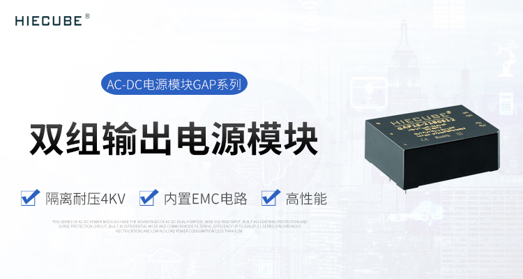 GAP系列是HIECUBE為滿足客戶對隔離耐壓4000VAC的應用需求,推出的小體積AC-DC隔離電源模塊,滿足單路供電需求。為解決客戶產品雙路輸出供電的應用,精簡用戶設備設計,推出15W雙路輸出電源模塊新品,滿足不同設備應用需求。