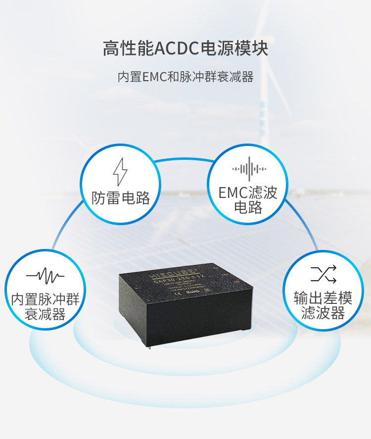 GAP系列—是HIECUBE為客戶提供的小型封裝形式的高性能模塊電源。該系列電源具有交直流兩用寬電壓輸入,內(nèi)置防雷防浪涌電路,內(nèi)置差模、共模濾波,效率高達(dá)83 %(全系列同步整流)。電源采用灌封封裝,具有防塵和防潮功能。本系列電源符合EN55032 Class B電磁兼容(EMC)特性和Class Ⅱ 隔離級別(安規(guī)),典型電路即可通過認(rèn)證測試。